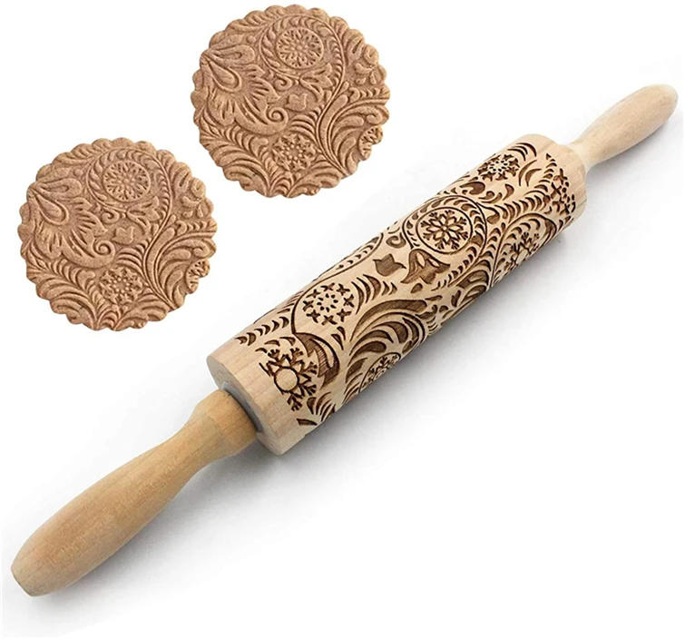 Embossed Rolling Pins for Baking, Small Wooden Roller Pin with Textured Pattern, Best Gift for Wedding, Holiday, Mother, Friends
